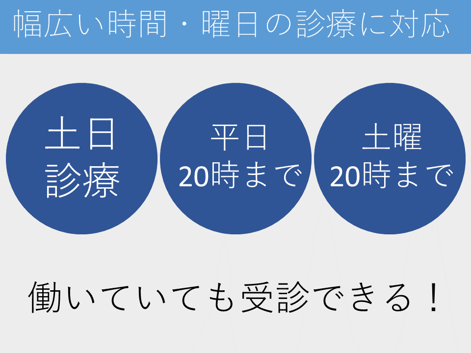 日中働く方にとって、平日の日中に診察を受けることは簡単ではありません。